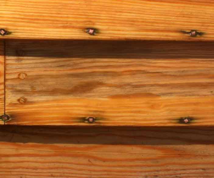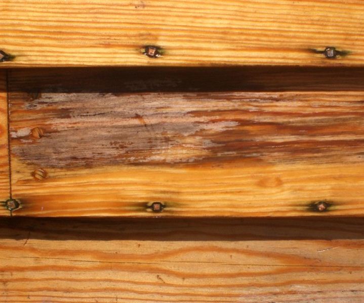 Lysner skjolder/merker på treverk og naturlig mørkt/møknet treverk.