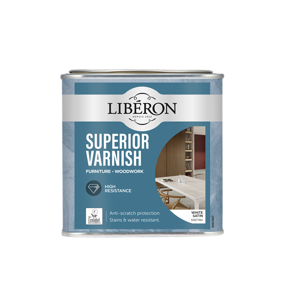 Liberon Superior Varnish er en vannbasert lakk spesielt utviklet for møbler, gulv, trapper, vegger, kjøkken og bad. Superior Varnish innholder keramiske partikler som gir god beskyttelse mot riper, hakk, flekker og vann. Denne lakken bevarer treverkets naturlige struktur og gir en vakker, slitesterk overflate.