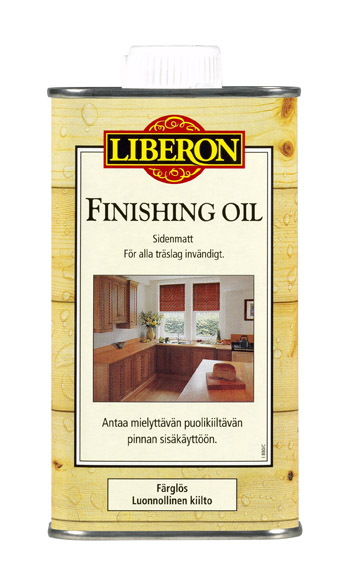 Liberon Finishing oil/olje er en blanding av høykvalitetsoljer, harpikser og tørkemidler som er spesielt motstandsdyktige mot vann, alkohol og fettsyrer. Finishing Oil/olje er basert på kinesisk treolje (nøtteolje fra Tungtreet) som regnes for verdens beste naturolje, og vil derfor ha mye bedre slitestyrke enn oljer basert på Linolje. Liberon Finishing oil/olje er sertifisert for bruk på barneleker og overflater som er i kontakt med matvarer. Oljen har evne til å trekke godt inn i treverket.