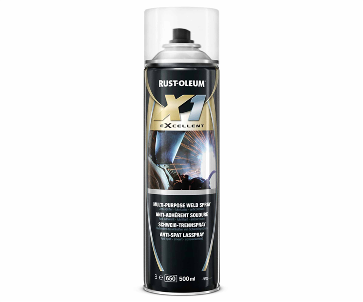 X1 Sveisespray fra Rust-Oleum er en teknisk sveisespray som hindrer sveisesprut i å feste seg på overflater av metall. Sprayen beskytter sveisede overflater mot korrosjon. X1 Sveisespray tåler ekstreme temperaturer, er motstandsdyktig mot kjemisk påvirkning og har fremragende termisk varmeledingsevne.