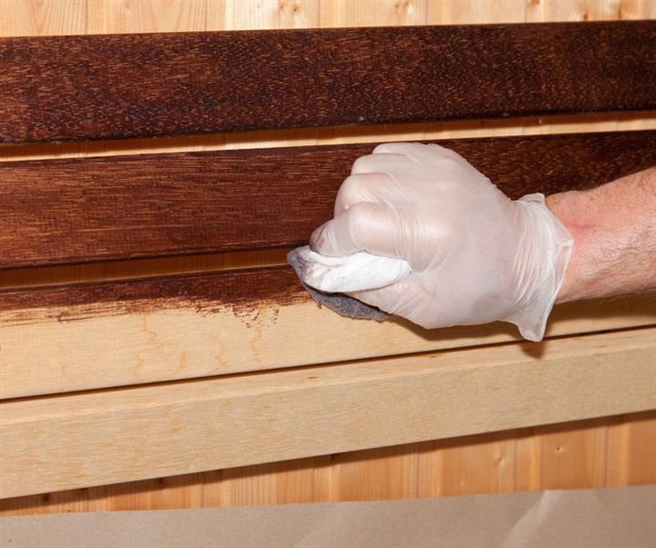 1. Påfør beisen med en klut, f.eks Liberon Universalklut. Tørk deretter godt med en ren, tørr klut i fiberretningen for å fjerne overskuddsfarge og få en jevn innfarging.