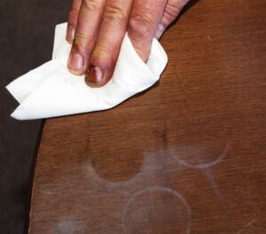 Slik fjerner du ringer/skjolder fra lakkflater som er oppstått som følge av fukt eller varme.